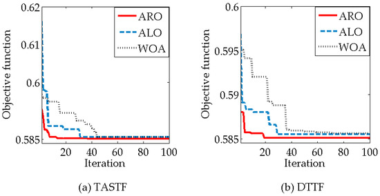 Figure 8. ARO, ALO, and WOA’s convergence curves.