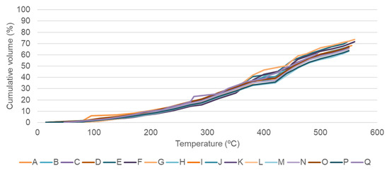 The distillation curves were obtained using the TBP method, according to the methodology described previously.