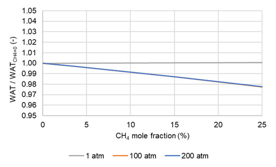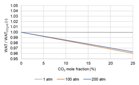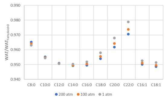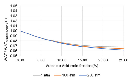 The values of WAT were also calculated at pressures of 1, 100 and 200 atm, and the results are presented in
