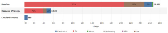 Note: RE and CE scenarios expect an increase of around 2000 in the total number of dwellings (from 11,227 in the baseline model to 13,313 in the year 2050) in line with the historical trend.