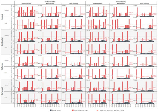 A heat pump diffusion model [41] quantifying the impact of installing ASHPs on the electrical load curves at the dwelling and UK levels was integrated into this research. Data for Orkney electricity system load were taken from Scottish and Southern Electricity Networks [42]. Average household level hourly electricity load structures were taken from a study conducted by Intertek [43] for various types of household settings including with/without electricity heating. Heating-related loads were taken from the total values so the impact on dwelling and grid level load curves are calculated. The loads are calculated for the coldest winter workday and holiday to investigate.