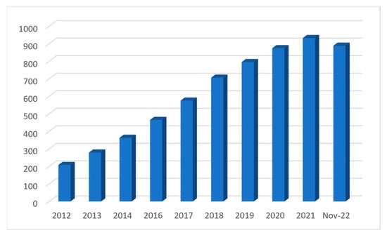 Even though the concept of CPEPS has appeared for a long time, the deep study of smart grids or energy and power sectors have gradually increased over the years with examination of physical power grids and power communication networks in collaboration []. Research efforts have been made worldwide from industry, academia, and national laboratories in the field of CPEPS research to contribute the investigation of power system vulnerabilities, mitigation strategies and system behavior during different kinds of conditions. Accordingly, the annual publication in the sector of CPEPS is increasing gradually over the years as shown in Figure 1 demonstrating the high interest of research in this area.
