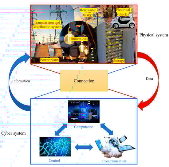 In the era of digitalization transformation, cyber system (control, computing, and communication) capabilities have been embedded in all types of objects and structures in the physical environment. A new technology with the integration of two layers, physical and cyber, is called Cyber-Physical System (CPS) leading to significant impacts and economic benefits that will be developed by harnessing these capabilities across both space and time []. With the same integration trend, the energy and power system are becoming increasingly complex in the development direction to utilize sustainable energies sufficiently and improve the safety, reliability, and efficiency of power grid. Indeed, electrical power grid is presently integrated with data devices, data acquisition devices and computing devices via the information communication technologies (ICT). The operation of the power system is dependent not only on energy flow but also on information flow. The integration of conventional energy and power systems with physical equipment as a core element and cyber system is called Cyber-Physical Energy and Power System (CPEPS).