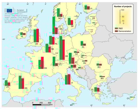 - Gangale, F.; Vasiljevska, J.; Covrig, C.; Mengolini, A.M.; Fulli, G. Smart Grid Projects Outlook 2017: Facts, Figures and Trends in Europe; Publications Office of the European Union: Luxembourg, 2017. [Google Scholar]