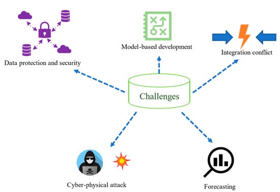 The existing challenges in CPEPS are proposed in this paper, which is ongoing research and encourage people to find out the solutions addressing these challenges. According to the existing technologies in the day and age, the devices currently are smart and connected to the Internet leading to challenges in (1) Cyber-physical attacks, (2) Data protection and data security. Therefore, it requires a system to predict and detect attacks as quickly as possible, challenge (3) Forecasting. Furthermore, the integration of cyber-system into existing conventional system with different vendors can bring challenge (4) Change management and conflicts in integrations, as well as the simulation-based in the future system–challenge (5) Model-based development. Overall, Figure 5 shows the current challenges of CPEPS.