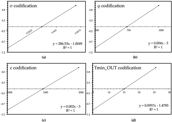 Thus, we employed RSM to define a valid polynomial function in the form of y = f(xi), where y is considered the response (thermal absorptivity) and xi represents the variables investigated in each set of simulations (fabric density, thickness, and thermal capacity and minimum outside temperature). According to the RSM approach, the values of xi were the coordinates of a simulation point inside our investigated domain, and y was the calculated value of the response at that specific point. To calculate y, we used the ASHRAE 55 [13] adaptive thermal comfort model updated by Kim et al. [28]. In the past, we successfully employed DOE methods and RSM to: