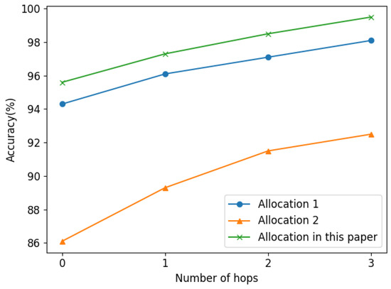 The numeric comparison results are shown in Table 4 and Figure 11 shows the k-hop fault location results. It is shown that the μPMU allocation used in this paper is superior to the other two methods. Among them, the performance of Allocation 1 is similar to that of the method in this paper, and the performance of Allocation 2 is the worst.