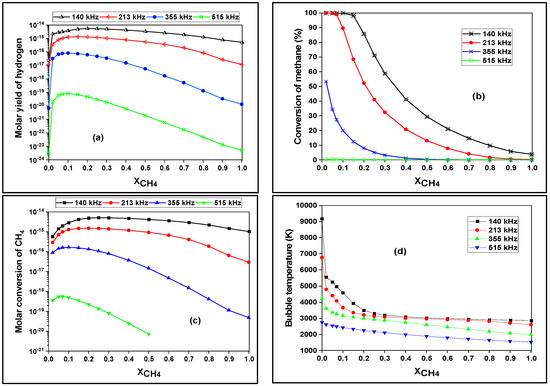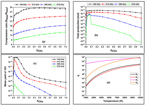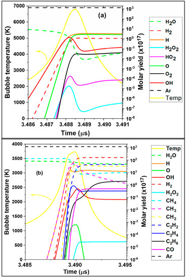 3.3. Effect of Methane Dose on the Bubble Chemistry and Dynamics