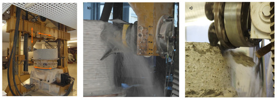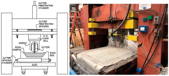 - Testing of resistance to cutting with disc cutter heads (Figure 12d,e) [31],