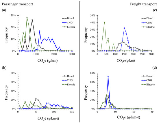 - Establishment of a threshold limit of GHG emissions per kilometer traveled and a ton of payload transported to any vehicle fleets (fleets larger than five vehicles) equivalent to a 20% reduction of the current value (22.42 g CO2e/km-t for T3) to be accomplished in the next 5 years. This alternative will force companies in the transport services to increase the energy efficiency of the transport service without limiting their economic growth. Transport providers will look after low-emission technologies, lighter vehicles, logistics improvements, better driving habits, fleet renewable, and any other complementary strategy to reduce energy consumption. For the case of passengers, the threshold value should be expressed per ton of GVWR, and a threshold value of 41.5 g CO2e/km-t (15.16 g CO2e/km-pas) is recommended for B2 buses;