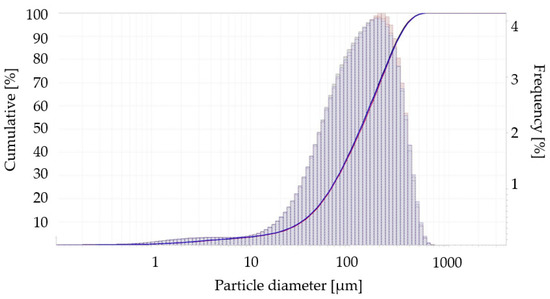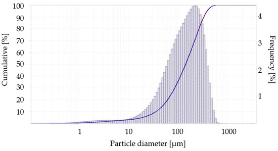 Results of the first particle size distribution analysis in terms of cumulative frequency.