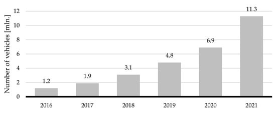 52]. Each of them defines the percentage growth of vehicles and charging points until 2030. This growth is related to the replacement of traditional vehicles used by individual users or vehicle fleets of companies and enterprises. There were 14,033 electric, light commercial vehicles in Germany in 2021, making it the second highest in Europe in terms of the use of EVs in the commercial sector [