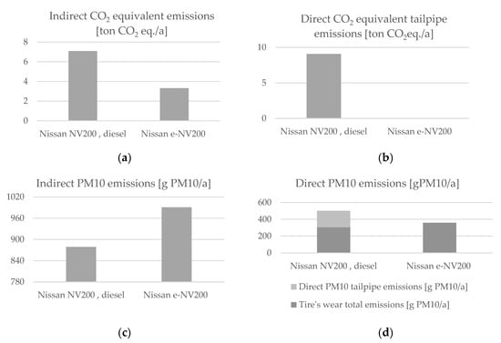 This paper analyses the technical, environmental and economic transformation of a vehicle fleet to reduce atmospheric emissions. Following on from the considerations, assumptions and assessments already discussed, an electric powertrain is suitable for a commercial LDV fleet. However, the EV fleet is a more expensive option and also includes the design and construction of the charging infrastructure; this can be assessed as a disadvantage of the BEV fleet. Moreover, environmentally, the electric LDV fleet results in a considerable reduction (up to 80%) in GHG emissions and a small reduction in PM10 emissions. The PM10 emissions are strongly linked to the national energy mix. CO2 equivalent emissions are reduced by almost 80%, with major environmental benefits. These values are closely linked to the mix of electricity sources, meaning that if the company were to build its power plant using renewable energy, the emissions associated with its energy production would be zero.