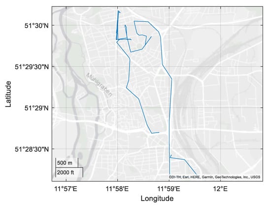 An exemplary techno-economic analysis was carried out using data provided by a commercial transport company. Measurement data, including real fuel consumption, operating costs and GPS data, were recorded for a fleet of 60 internal combustion LDVs. This data was used, in part, to develop the TCO analyses presented earlier and create profiles, i.e., the routes that the vehicle had to travel per day. An example route is shown in