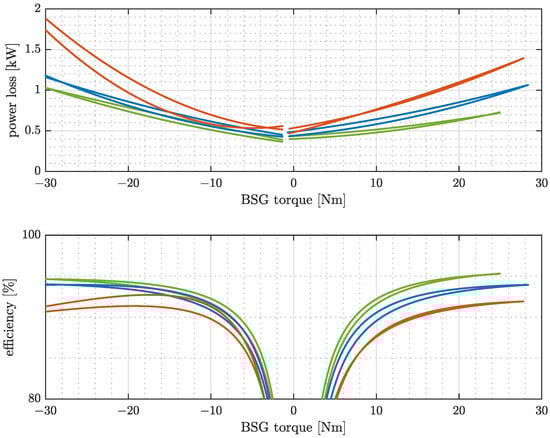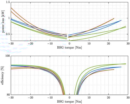 where is the crankshaft torque, is the BSG torque, is the crankshaft speed and is the BSG speed. The dissipated power () is: