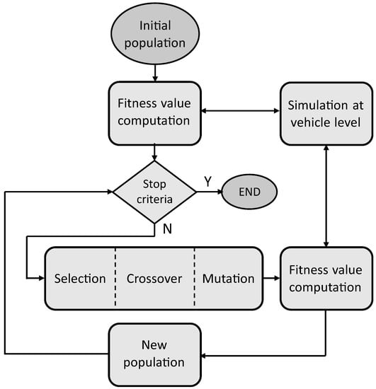 - Piccolo, A.; Ippolito, L.; zo Galdi, V.; Vaccaro, A. Optimisation of energy flow management in hybrid electric vehicles via genetic algorithms. In Proceedings of the 2001 IEEE/ASME International Conference on Advanced Intelligent Mechatronics, Proceedings (Cat. No.01TH8556), Como, Italy, 8–12 July 2001; Volume 1, pp. 434–439. [Google Scholar] [CrossRef]