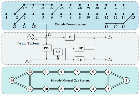 This paper adopts the coupling system of a 33-node power system and 14-node natural gas system, as shown in Figure 3.