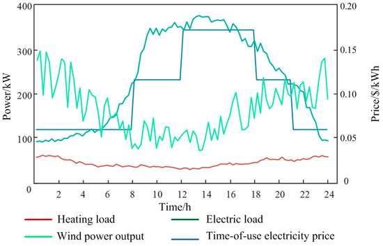 Curves of different load, wind power and time-sharing electricity price.