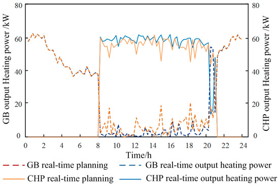 Comparison of real-time planning and actual output of thermal power output of gas-fired boilers and CHP.
