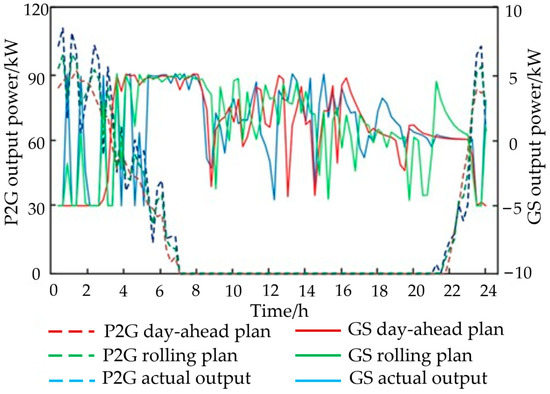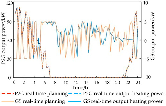 Comparison of real-time planning and actual output of P2G and gas storage devices.