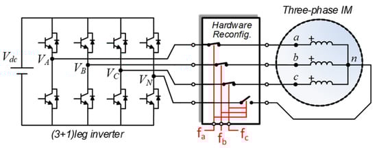 Adjustable speed AC motor drives are, in general, susceptible to failure, especially in the power section where the stress is on the power switches and/or motor windings [,]. Since the failure might cause the whole drive to shut down, reliability is a key feature in applications in which a failure can cause safety issues. For example, fault-tolerant control of three-phase adjustable speed drives in automotive applications has recently attracted significant attention [,,,]. Thus, the need for an effective fault-tolerant method that can be embedded into the existing motor drives is practically favorable.