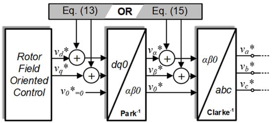 One step before PWM, the control variables vd*, vq*, and v0* are basically transformed into modulating signals by applying the inverse Clarke–Park transformation given in (1).