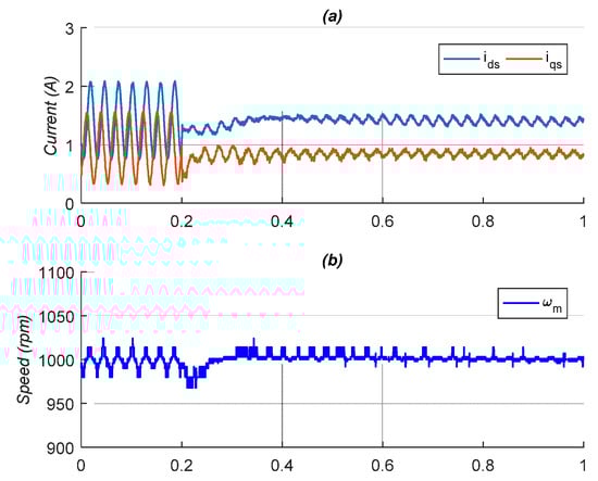 As with the case of faulted PMSM discussed in [], issue X1 is the main cause of control performance degradation in faulted three-phase induction drive even after converter reconfiguration. When PI controllers are used, the AC disturbance voltages disrupt the regulation of the d-q currents, due to the inability of PI controllers to completely suppress AC signals.