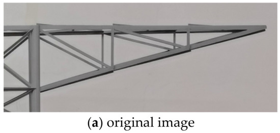 The method of structural displacement detection based on computer vision had the advantage of long-distance, multi-point, and contactless monitoring [4,5]. In the field of crack identification and monitoring [6,7,8], the features of concrete, geological, and other surface cracks were identified by monocular or binocular cameras, and data analysis was performed using compressive sensing, deep learning, finite element, and other methods to carry out structural health inspection research, which had excellent benefits. The ROI (region of interest) method is based on computer vision monitoring, which could achieve long-distance transmission tower structural displacement monitoring without targets. This method took the inner contour of the transmission tower structure as the ROI, combined the SUZUKI contour tracking algorithm [9] and the Harris corner point detection algorithm [10] to extract and track the key points, and then obtained the displacement changes of the key points of the transmission tower. However, the actual transmission tower was located in a harsh environment with complex backgrounds such as clouds, trees, houses, and non-uniform illumination caused by different sunlight irradiation angles that would affect the recognition accuracy of the method. Thus, it was the key to reducing the impact of noise on recognition accuracy and whether the method could be successfully applied in practice.