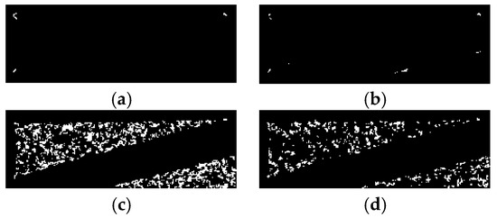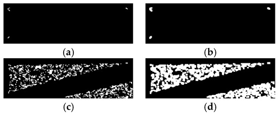 ② As shown in Figure 5b–d, the key corner point is near a collection of pixels, and there is a pixel difference in different images. Therefore, taking the position of the rightmost pixel as the recognition corner point will generate 1- to 2-pixel errors.
