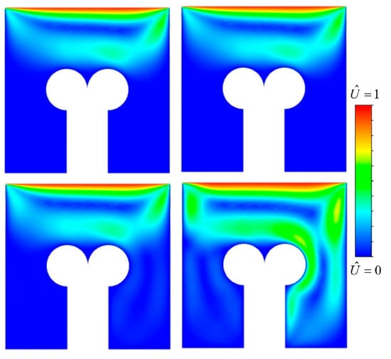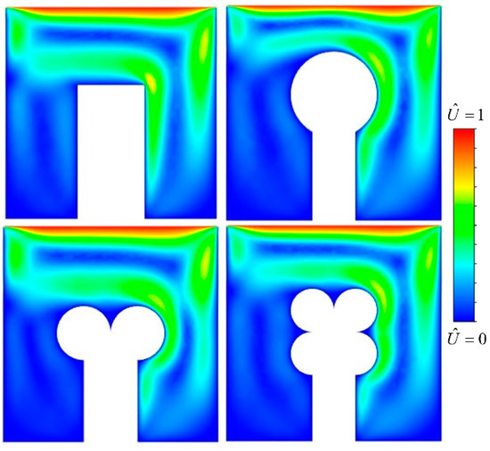 - Shi, X.; Khodadadi, J.M. Laminar fluid flow and heat transfer in a lid-driven cavity due to a thin fin. J. Heat Transf. 2002, 124, 1056–1063. [Google Scholar] [CrossRef]