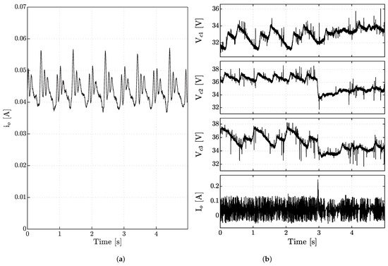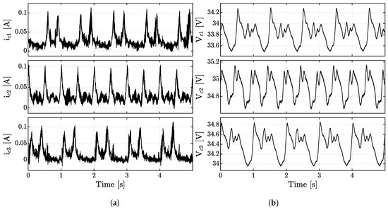 Figure 8b shows the capacitor voltages. The mean value is set to 35 V, and the difference between them is less than 1 V.