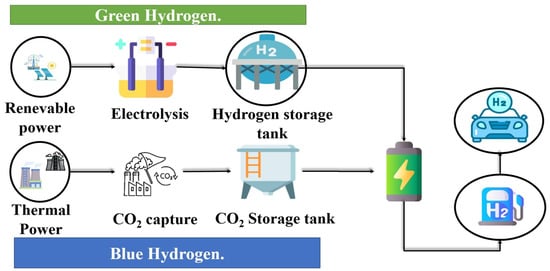 The growth of the world’s population and energy demand has had a considerable impact [1,2] emissions. Therefore, a continuous energy supply is sought to help mitigate the negative impacts caused by the burning of fossil fuels, such as greenhouse gas emissions. Currently, one of the opportunities to maintain this supply is through different forms, among them, renewable sources, such as solar, wind, and hydrogen, are especially promising [3]. In the same vein, countries are moving towards the energy transition from conventional sources to renewable energies, considered a viable option for the management of environmental problems. For this reason, technologies such as wind turbines, solar farms, and recently, the production of hydrogen on different bases, etc., have been developed. These are capable of producing clean energy; however, it has been verified that they are dependent on intermittent resources Chi-Wei Su [2].