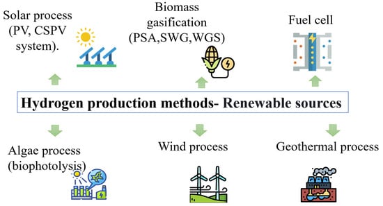 Renewable energies contribute a small fraction of hydrogen production, which is why recent research has focused on developing environmentally friendly and pollution-free hydrogen from these sources (Table 7).