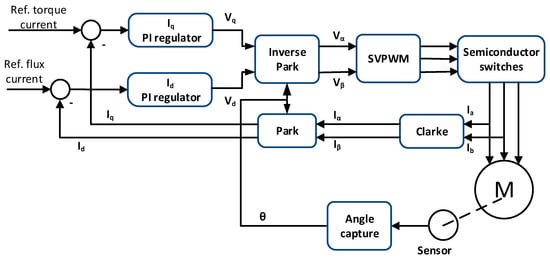 Permanent magnet synchronous electrical machines in addition to high efficiency and a high power factor also offer reduced torque ripple. Thus, making these types of electrical machines quite attractive for use in photovoltaic water pumping applications. In particular, the good results for these machines can be achieved with the help of modern control techniques such as fuzzy control and sliding mode control. Another promising type of electrical machine for SWPPs is the SynRM. As was shown by authors in [34], the application of a synchronous reluctance machine for a pumping system can lead to significant efficiency gain, which is very important in the case of a photovoltaic pump system when the power flow is quite limited and depends on climatic conditions. Therefore, the development of simplified control systems for SynRM can help to make these electrical machines more affordable for photovoltaic pumping systems.