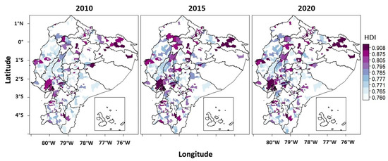 Annual geospatial HDI of Ecuador from 2010 to 2020.