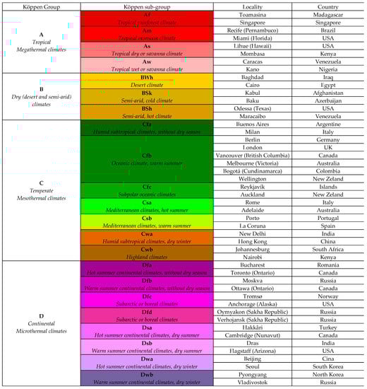 - Selection of cities homogeneously distributed throughout the world across the Köppen climate classification (Section 2.1)