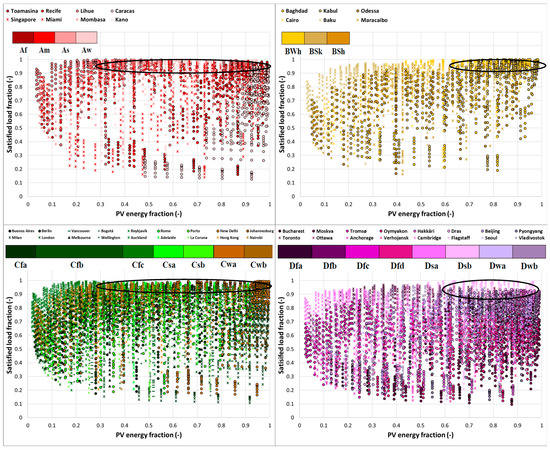 Figure 3 shows the SLF of 343 system power configurations. Each quadrant represents a Köppen–Geiger area.