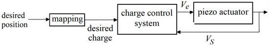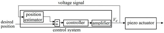 On the other hand, VS is often used to estimate charge rather than position. Advantageously, charge and position are proportionally related in wide operating areas for many piezoelectric actuators [37]; thus, finding charge from position or vice versa is often not a difficult task. Hence, sensorless control systems using VS are known as charge-based sensorless systems [37,38]. Figure 4 shows a general schematic of such a control system.