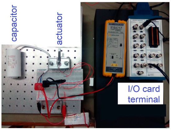 A piezoelectric actuator, from an electrical viewpoint, behaves almost like a capacitor with a capacitance of CP [41]. As to Figure 7, the voltage across R is same as the voltage across the actuator, as presented in (6), since they are in parallel.