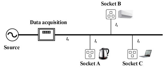 The model in (11) can be used to describe the current waveform generated by any appliance under a certain operating state. However, under actual working conditions, the aggregated current often contains m different appliances. At this time, the aggregated current can be approximately estimated through the linear superposition of the m appliances’ currents: