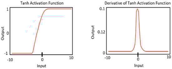 The sigmoid function’s zero-centered problem is resolved by utilizing a tanh [23] activation function. The figure below (Figure 2), which is a visual depiction of the function, shows that the sigmoid function has been scaled and recentered. With an output range of −1 to 1, the ‘S’ shape denotes the non-linear character of the system. The function can converge significantly more quickly than the sigmoid function because the ‘zero-center’ problem has been solved.