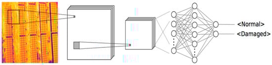 A CNN based on the VGG-16 architecture is proposed by Pierdicca R et al. [77] for the detection of faulty PV cells; the classification pipeline is presented in Figure 8. One of the explanations given by the authors for their choice of VGG-16 is its ease of implementation. However, numerous frameworks, such as Pytorch and Tensorflow created by Google and Facebook, respectively, now make it easy to use various SOTA pre-trained models. As a result, choosing an architecture should be dependent on the properties of the dataset rather than its ease of implementation. The lack of batch normalization inside the network’s convolutional layers is one of the author’s own admissions of the consequences of choosing the VGG-16 network. Based on the information we can understand, the authors do not offer any computational details; if they did, we believe the model training and convergence times would be much longer than they are for models that use batch normalization [78]. The results are considered modest, despite the authors’ claim that using data augmentation enhances the model performance, and the authors cite the large imbalance in the damaged photos as the cause. Instead of depending solely on 0.001, the model might have been further fine-tuned for greater accuracy by altering the learning rate.