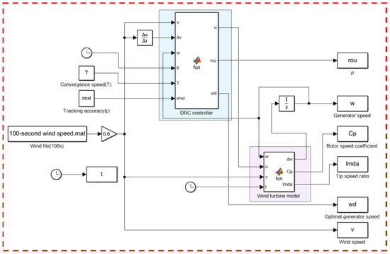 In this study, a DRC control strategy for WT systems’ maximum power tracking is suggested. The control scheme can be pre-given arbitrary parameters and can make all tracking errors converge to within a specified accuracy range within a time given by the designer. Experiments prove that the size of the convergence time determines how fast the tracking error converges to within the given accuracy range; the smaller the , the faster the speed. While the tracking accuracy determines the final convergence range of the tracking error, i.e., it affects the accuracy of the control, the smaller the , the higher the control accuracy. Choosing the right tracking accuracy and convergence time can achieve sensitive tracking of the error. For wind turbine systems, the control scheme can track the optimal blade tip speed ratio for a given tracking accuracy and speed, and achieve fast and accurate tracking of the optimal turbine speed trajectory, e.g., within a convergence time , so that the tracked speed error converges to an accuracy range of 0.01 for the upper and lower limits, and the rotor power coefficient reaches its maximum. Further, the tracking accuracy can be changed to reduce the fluctuation of wind energy utilization coefficient and TSR near the ideal value, with the goal to achieve the greatest power tracking control and the most wind energy collection, with strong robustness in the face of complex wind speed changes, and the control input is bounded and smooth. However, the wind turbine model is simplified for research, and a complicated non-linear wind turbine model will be incorporated in further work to confirm the controller’s effectiveness in terms of control.