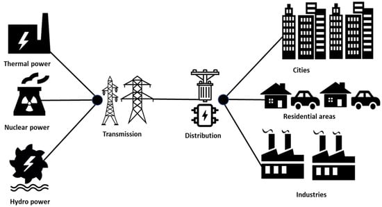 The conventional power systems, illustrated in Figure 1, have historically relied on a small number of centralized and large power generation sources, typically utilizing hydropower or fossil fuel-based power generation systems. This power is transmitted over a large transmission network and ultimately delivered to consumers through a distribution system (Figure 1).