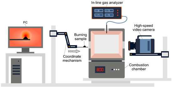 The compositions of gas-phase combustion products (CO, CO2, SO2, and NOx) were determined using a flow-through gas analyzer. The flow rate of passing gases was 3 L/min, and the frequency of the sensor’s scanning was 0.33 Hz.