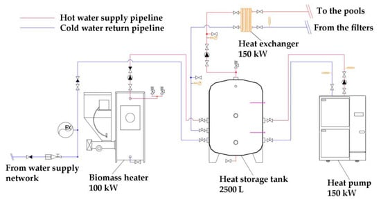 - Kuyumcu, M.E.; Tutumlu, H.; Yumrutaş, R. Performance of a Swimming Pool Heating System by Utilizing Waste Energy Rejected from an Ice Rink with an Energy Storage Tank. Energy Convers. Manag. 2016, 121, 349–357. [Google Scholar] [CrossRef]