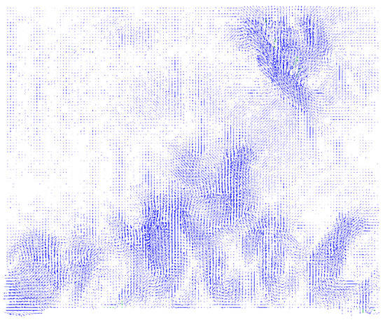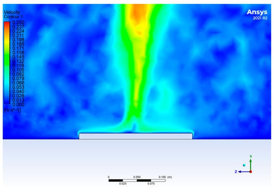At the end of the evaluation, the Peak Validation function was used, setting a limit ratio of 1.2 px. The resulting vector field of air velocities after using the Peak Validation function is displayed in Figure 4.