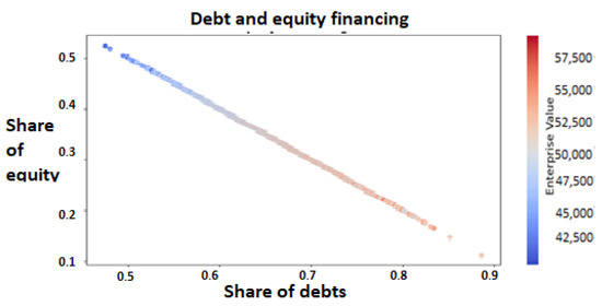 Figure 1 presents a scatterplot of the company’s value against the weighted average cost of capital for each simulated scenario, illustrating the trade-off between company value and cost of financing.