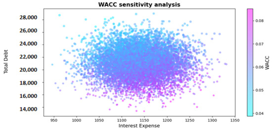 Sensitivity analysis suggests that the risk-free rate and total debt have the highest impact on WACC, with a 1.26% and −1.36% impact, respectively, while the impact of the other parameters is relatively smaller.