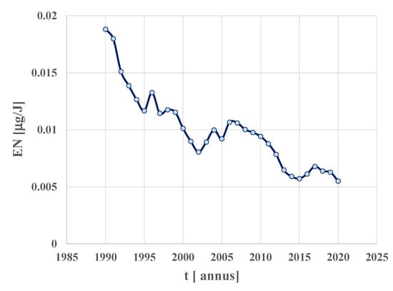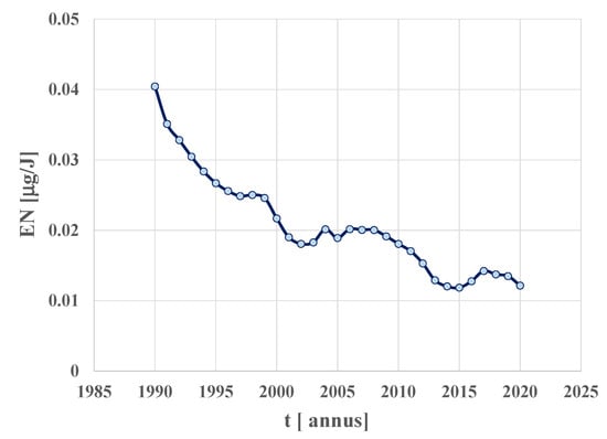 The subject of subsequent analyses was the relative derivative of the energy emission factor in relation to the national annual pollutant emissions: